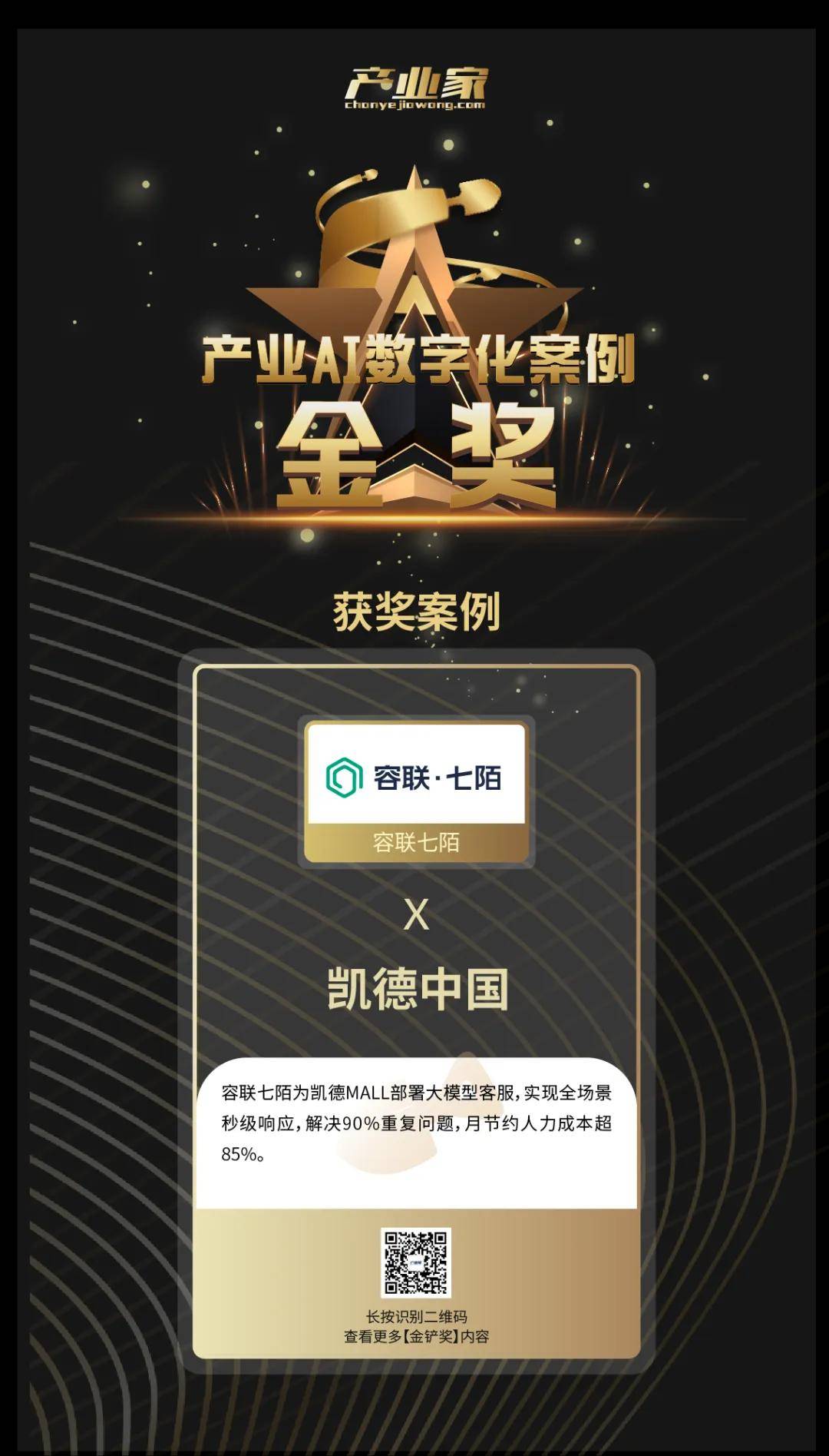 正如产业家所言,这是AI赋能框架的全新范式。容联七陌此次获奖,不仅是对过往成绩的肯定,更是智能商业服务新时代的序章。