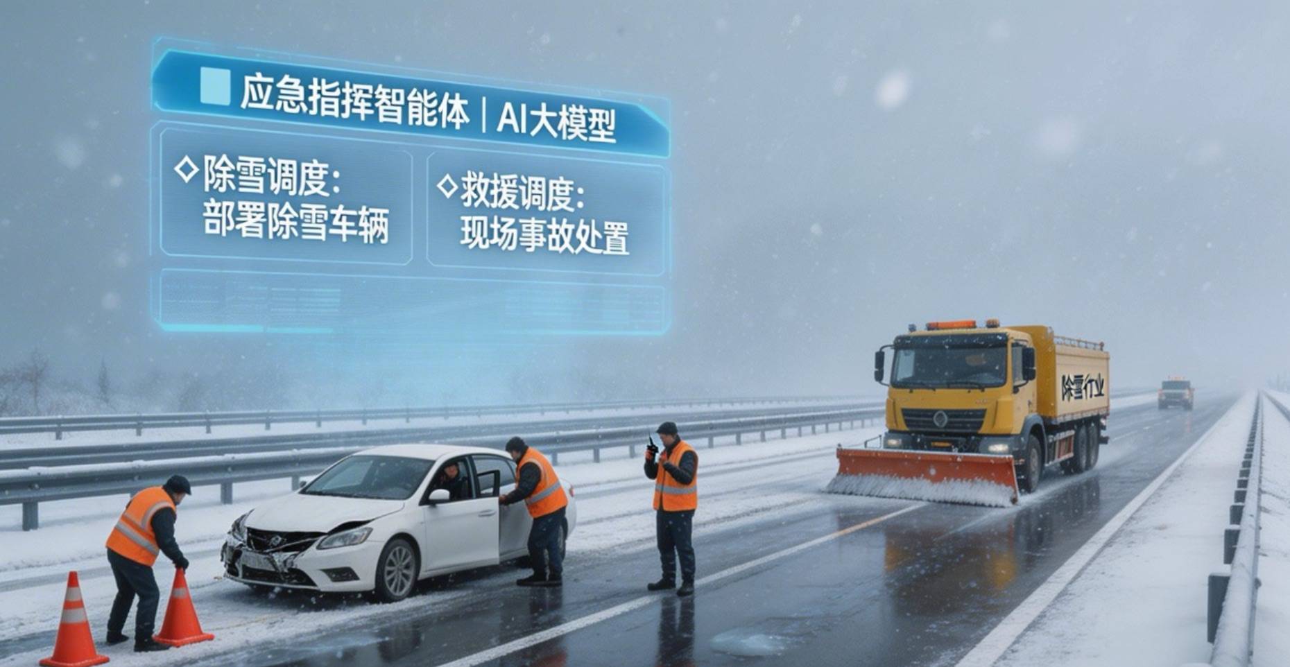 在接收到暴雪、冻雨等气象预警后,智能体可自动识别天气类型与风险等级,快速生成处置方案,联动交警、路政、养护、救援等多部门,提前完成人员、设备与物资的集结与部署。